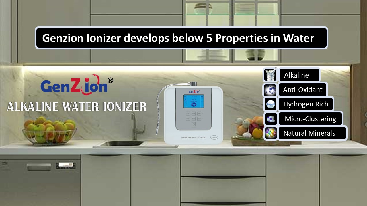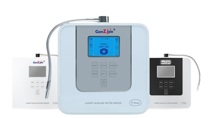 Genzion ionizers increase the pH level of water, providing alkaline water that is believed to help neutralize acid in the body and offer antioxidant benefits.